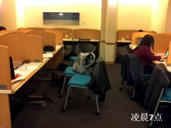 美国的大学是出了名的累,有许多在国内和美国都读了大学的同学都觉得美国大学要比国内的大学压力大得多,从其他西方国家来美国读书的朋友也有了同样感受。 原因是多方面的,从美国的课程设置到教育体制到高等教育的理念都有原因,在这里就不细谈了。而宾夕法尼亚大学,则年年在包括NEWSWEEK在内的各大机构评选的全美压力最大学校中名列前茅。 网上流传着一张哈佛大学凌晨4点图书馆爆满人的照片,但人们不知道的是,美国大多数其他大学也是这样。下面几副图为小编拍的不同日期的宾大学生通宵奋战的照片(宾大的图书馆和自习室多为24小时的)。