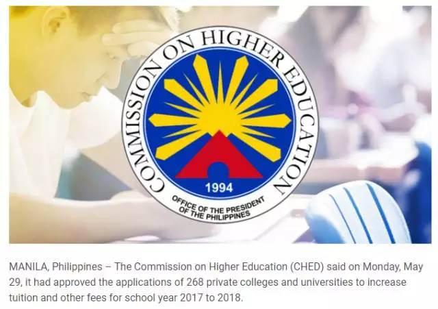 如果我们打开这个图片标注的信息来源,我们会发现这是菲律宾高等教育委员会发布的一条消息,它批准了268所菲律宾私立大学和学院2017-18年度上涨学费的要求,在被批准的学校中,来自马尼拉、南吕宋岛和吕宋中部的大学数量最多。