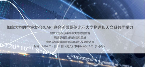 1.加拿大物理奥赛(CAP)(4月11日):高中任意年级