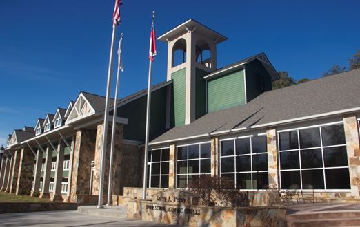 乘车向南1个小时我们到达了这次我们访问的学习:塔卢拉瀑布中学(Tallulah Falls School),塔卢拉弗中学位于南塔哈拉国家森林公园的边缘地带,有当地知名的塔卢拉瀑布,学校也因此而命名。可以说这里是学术的桃源乡,因为临近森林公园,校区周围被杉林和溪流环绕着,这里湖光山色,蓝天绿水,气候温和,平常会组织学生去森林公园徒步,野营。校方认为让学生走入大自然不仅可以放松身心,也可以让学生在大自然的课堂中学习书本以外的知识。