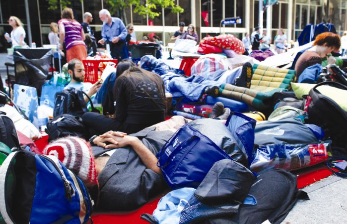 周六开始,有约200名抗议者,在位于马丁广场的澳洲储备银行外面搭起了帐篷,以响应“占领华尔街”这一“全球革命”。不过到了当天晚上,警方则开始出动,移走了抗议者的帐篷、床垫以及其他物品。