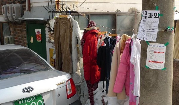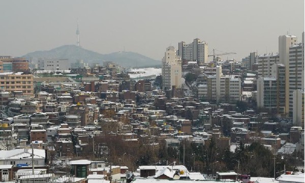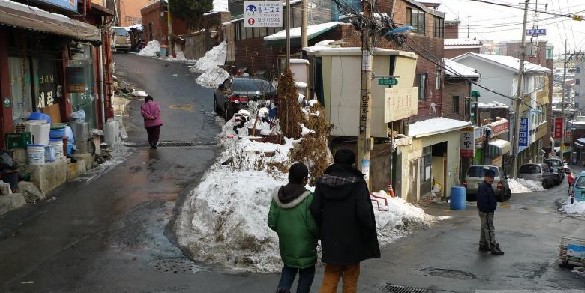 韩国的贫富差距很大,有钱人住几百平米的独门独院,家里司机、保姆具备;中产阶层住在绿化得很好的高层公寓里;低收入的人只能住在狭窄街巷中的老旧的住宅里。上了这个坡,就是大片的蜗居。
