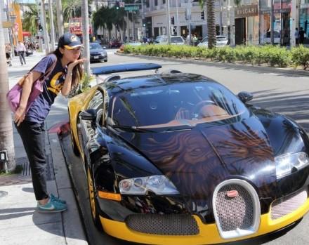 因为今天天气实在太热了,所以当我们去到Rodeo Drive(洛杉矶著名高档购物区)的时候,并不期待可以碰到哪位明星,不过紫薇还是在路旁看到一辆Bugatti靓车,而每个街角矗立着的顶级品牌,也让我们想起了那部叫Pretty Woman的电影……
