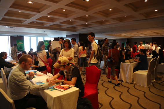活动开始前,早早入场的学生和家长们在领取澳大利亚留学资料