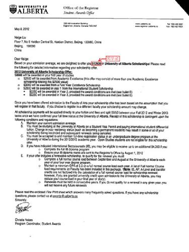 最终通过我们细心的材料整合和文书包装,帮助学生申请到了阿尔巴塔大学的双录取并成功获得12500加元的奖学金。