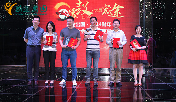 2014年7月7日,前途出国2014财年表彰大会暨誓师晚宴在北京中钢江南赋主题餐厅举行,全体获奖员工及代表齐聚一堂,公司CEO周成刚、常务副总裁孙涛和副总裁俞仲秋老师携公司高管出席大会,大家一起共同庆祝前途人的时刻。