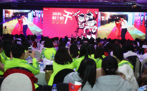 1月14日,新东方前途出国2015迎新晚会在亮马桥大厦紫金厅上演放肆地狂欢。俗话说会休息的人才会工作,这次年会的主题“敢享敢干”便表达了对小伙伴们新年的美好祝愿,希望大家在工作之中敢干敢闯,在工作之余敢玩敢享。