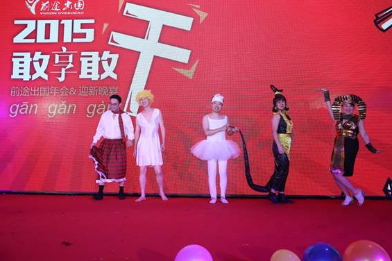 2015前途出国年会圆满成功是全体前途人通力合作的胜利!感谢公司领导们对年会筹备的大力支持,感谢市场部、网络营销部同事们的对年会策划、设计和网络的合作支持,感谢各部门精心策划部门style为年会增光添色,感谢所有演员、主持人、模特们辛苦排练和精彩演出,感谢所有从精神和行动上为公司年会举行奉献力量的小伙伴们!