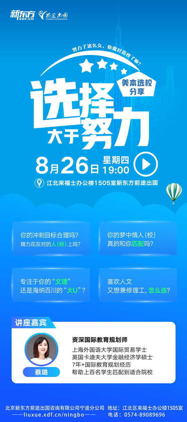 本次特邀英国卡迪夫硕士蔡璐老师做客宁波!