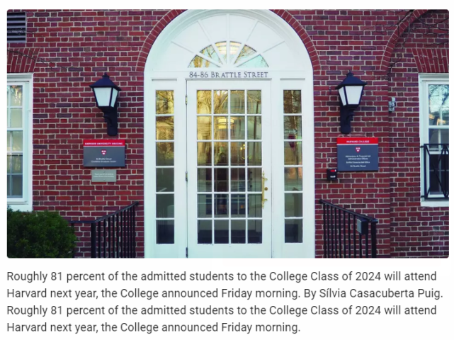 但这些选择延迟入学的新生,并没有影响哈佛大学的入读率,今年哈佛的入读率为81%。