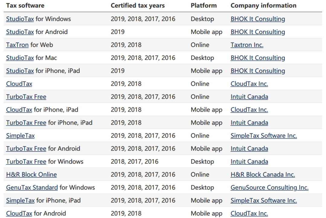 小编也把网页链接放出来,方便大家到底:https://www.canada.ca/en/revenue-agency/services/e-services/e-services-individuals/netfile-overview/certified-software-netfile-program.html