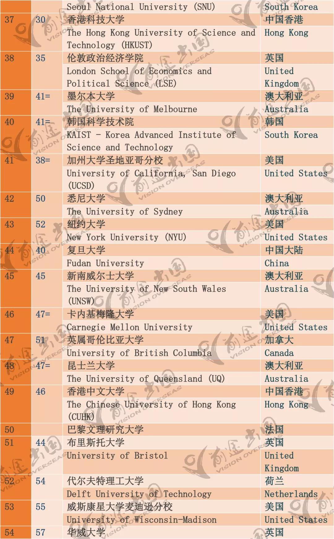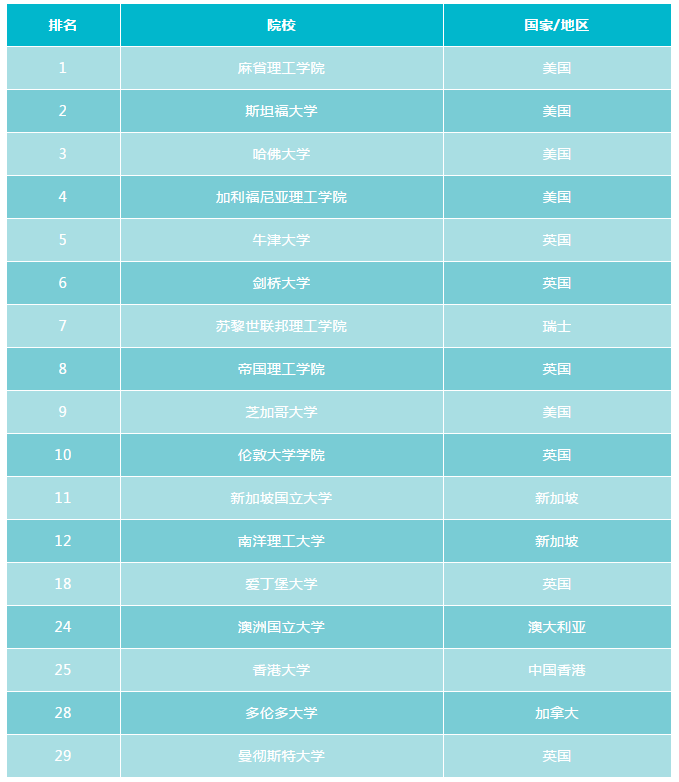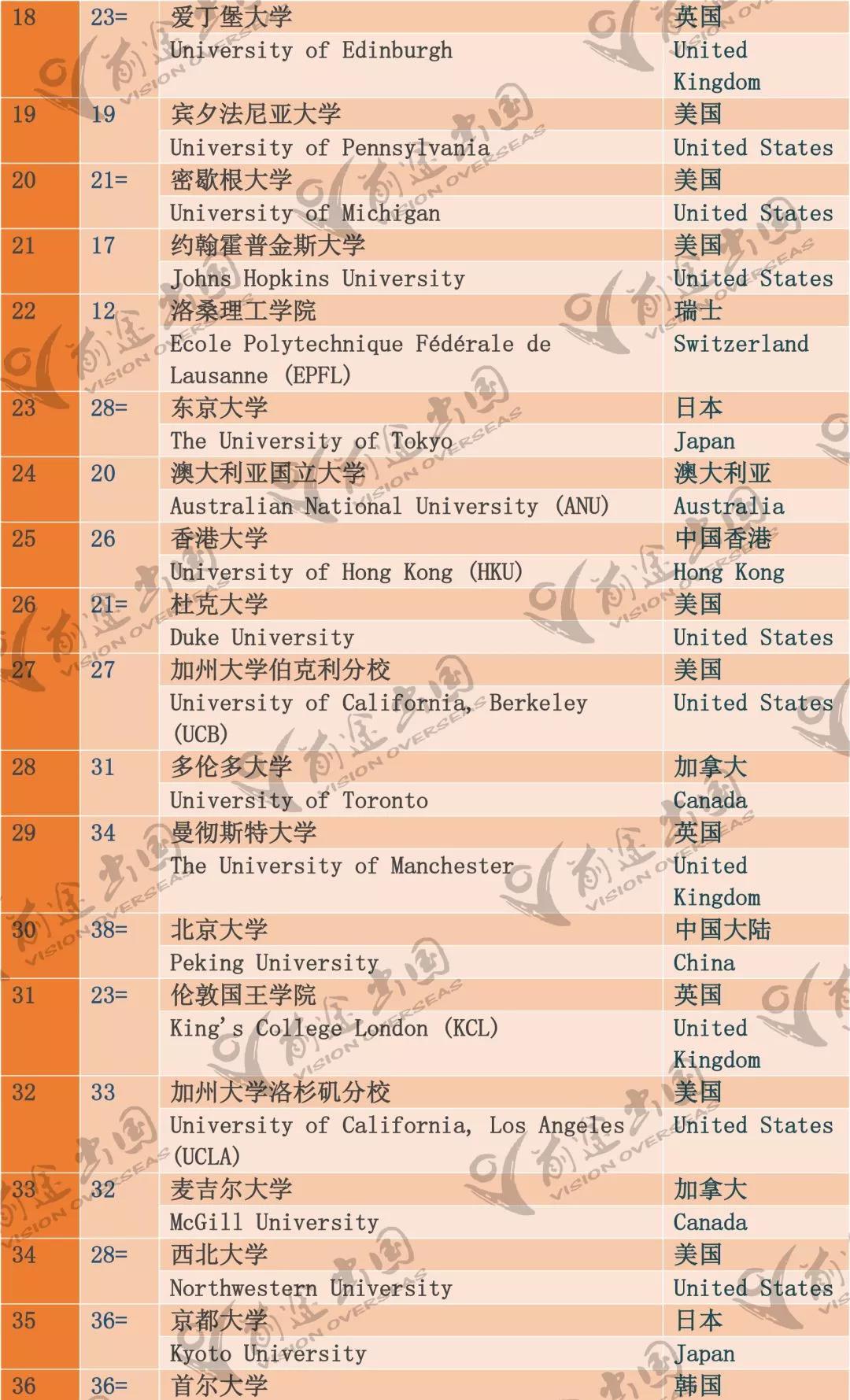 ■ 以下是本次2019QS世界大学部分TOP30院校