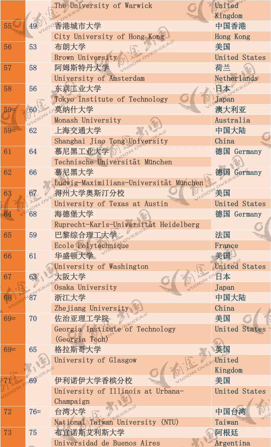 欧洲大陆依然是瑞士苏黎世联邦理工维持其霸主地位,并且排到了历史最佳的世界第七。