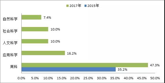 商科仍是海归在国外获得最高学位比例最高的主修科目;