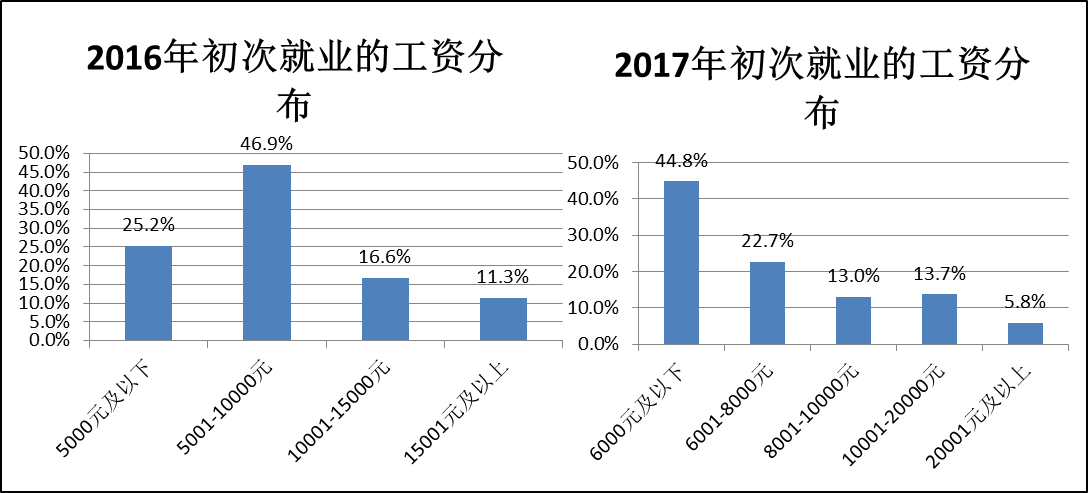 海归初次就业的工资分布,超过10000元的比例有所下降