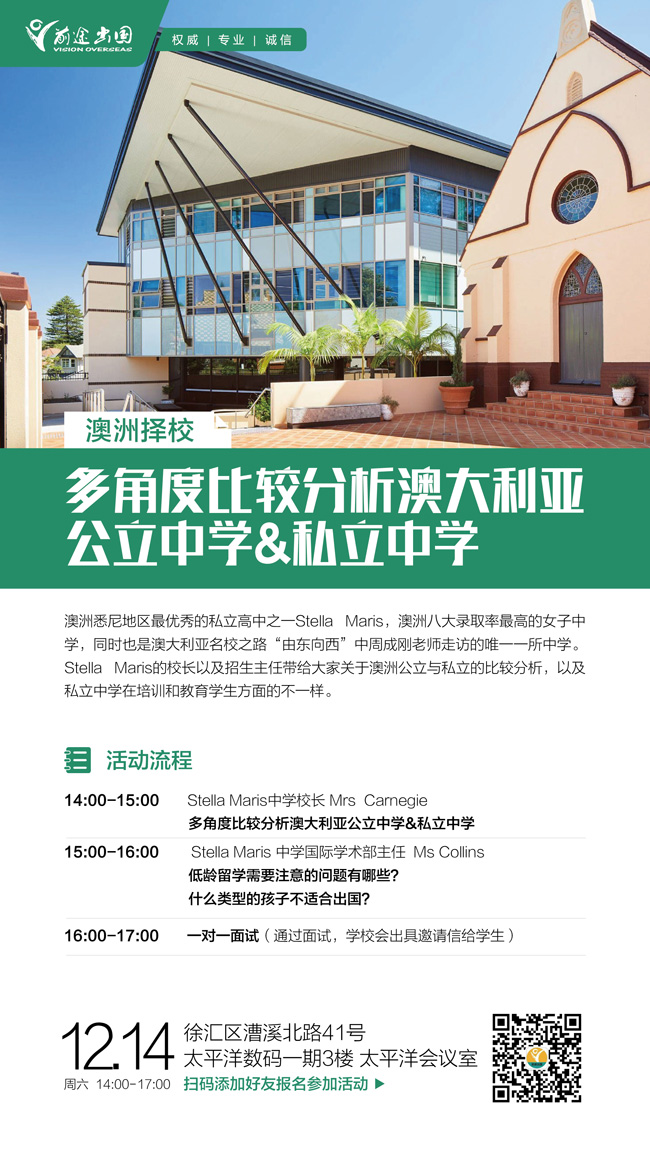 澳洲悉尼地区最优秀的私立高中之一Stella Maris,澳洲八大录取率最高的女子中学,同时也是澳大利亚名校之路“由东向西”中周成刚老师走访的一所中学,Stella Maris的校长以及招生主任带给大家关于澳洲公立与私立的比较分析,以及私立中学在培训和教育学生方面的不一样。