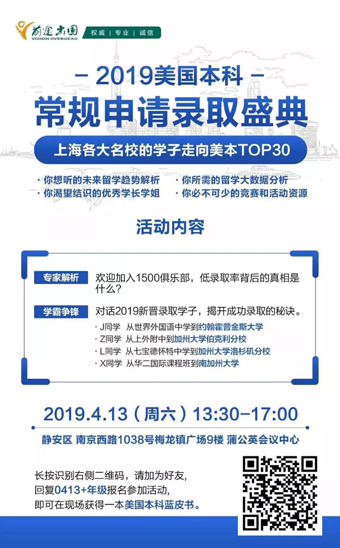 4.13|2019美国本科常规申请录取盛典线下活动