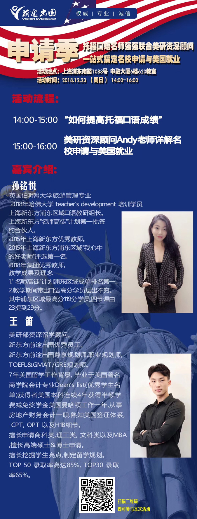 12.23 托福口语名师强强联合 一站式搞定名校申请与美国就业线下活动