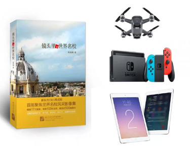签约即送周成刚老师著《镜头里的世界名校》,同时可参与红包抽奖,还有大疆Spark无人机、任天堂游戏机、ipad等着你