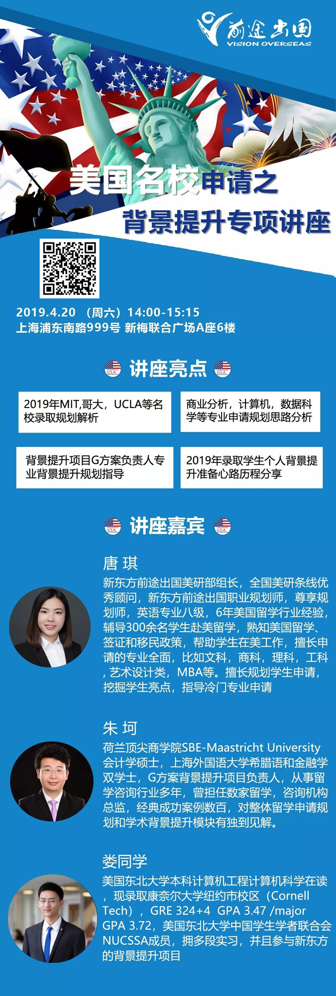 4.20丨美国名校申请之背景提升专项讲座线下活动