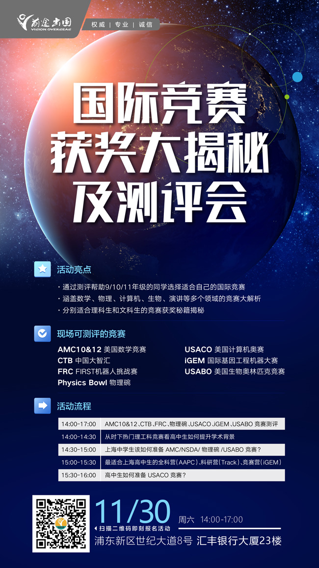 14:30—15:00 上海中学生该如何准备AMC/NSDA/物理碗/USABO竞赛?