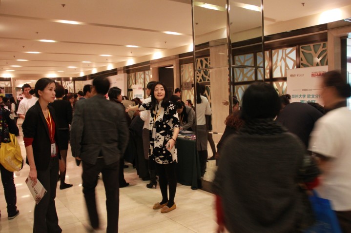 一大早,我们前途出国的工作人员就已经把教育展现场布置的井井有条了