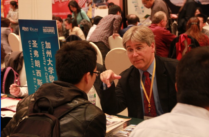 美国领事馆官员亲临教育展现场做美国留学讲座