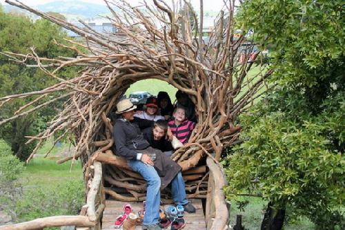 Jayson是来自加州一所国际文化艺术中心——“Big Sur灵性花园”的艺术家。他的“鸟巢”全部采用当地的树木上收集的枝条制作。在收集枝条时,他会严格遵循“可持续采伐”(sustainable harvest)的原则,确保不对树木或者当地的生态造成破坏。