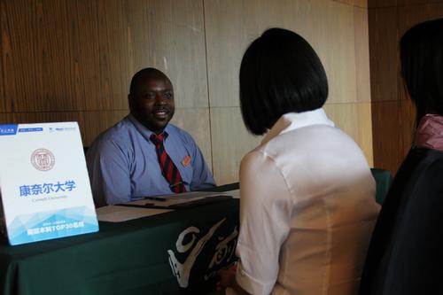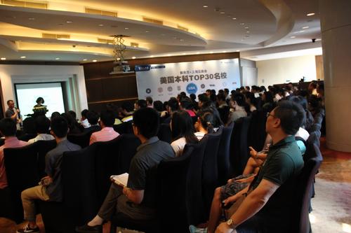 几轮紧张的面谈之后,学生们终于得以和家长会合。而此时来自美国top30各大名校的官员们,也来到了讲座区现场,为各位介绍自己所任职的学校概况。他们热情的态度和幽默的表达,引得现场笑声掌声一片。