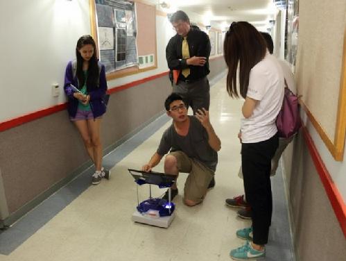 Harvey Mudd一位大三的同学向我们展示可以自动识别教学楼环境、并行走的机器人。Harvey Mudd毕业生成为博士的比例在全美排第二,仅次于加州理工。