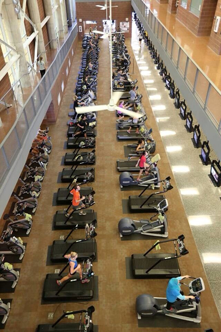 (俄亥俄州立大学的健身中心,据说是全美大学里最大的健身中心。注意,这只是其中一层的一小部分。大家可以发现运动器械很充足,有许多跑步机空着,要知道,俄亥俄州立大学有5万6千多名学生!)