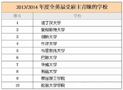 英国专门研究大学毕业生就业市场的机构(High Fliers Research)发布了最新的“2013/14年度全英国最受雇主青睐的学校”排行榜,在各大排名中一直很低调的诺丁汉大学,居然高居榜首哦!