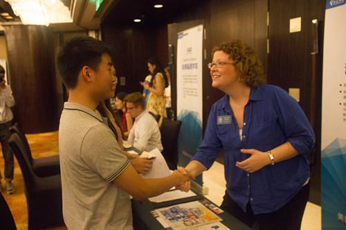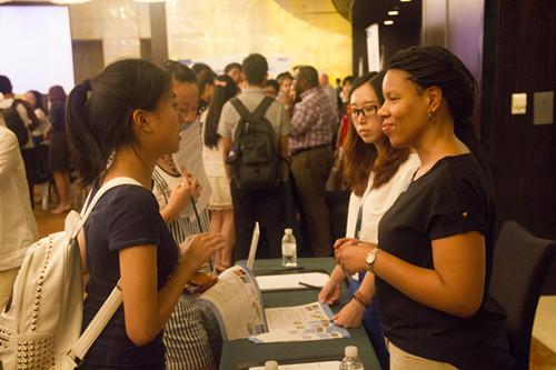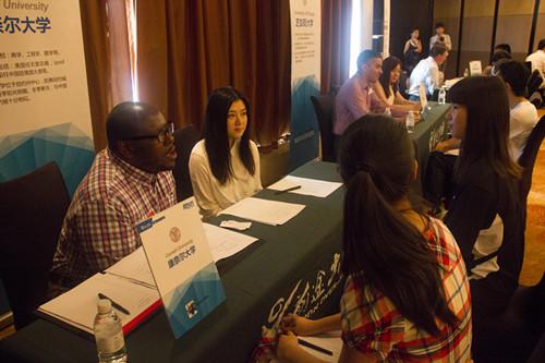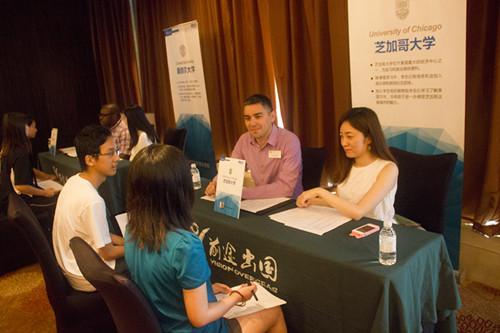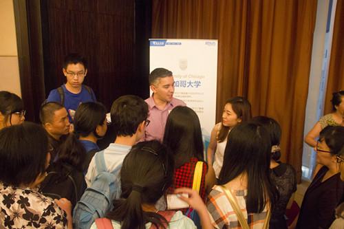 在自由交流环节中,每个来现场的同学都可以直接与名校的招生官直接交流进行咨询!这两个向往进入芝加哥大学的同学表现的兴奋又紧张,离dream school又进了一步呢!
