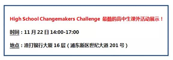 22日,与他们相约High School Changemakers Challenge!而同时即将与大家见面的,还有来自上海及周边地区高中的优秀高中生课外项目!