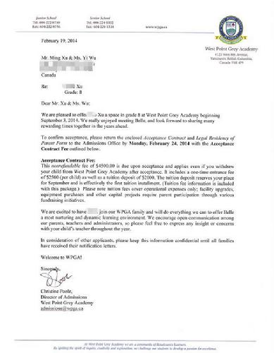 录取学校:West Point Grey Academy(西点格雷学校,私立贵族第三)