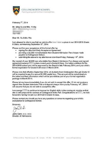 录取学校:Burnaby School Board School(本拿比公立教育局),9 年级
