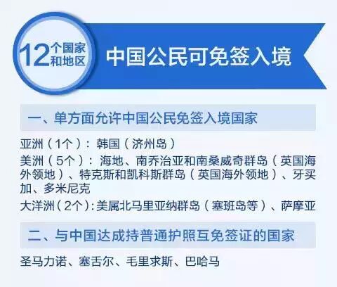 12个国家和地区,中国公民可免签入境。