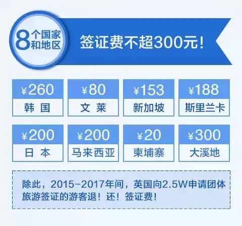 签证费用便宜了。去这些地方啊,签证费统统不超过300RMB!