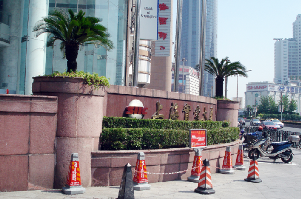 从地下出来,迎接我们的不止是耀眼的阳光,还有上海实业大厦耸立的高楼。