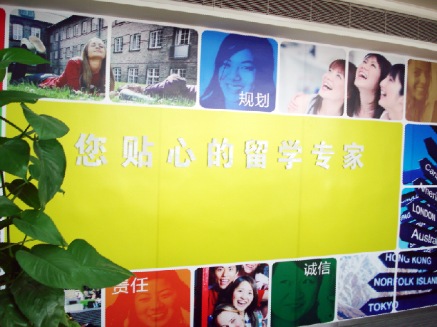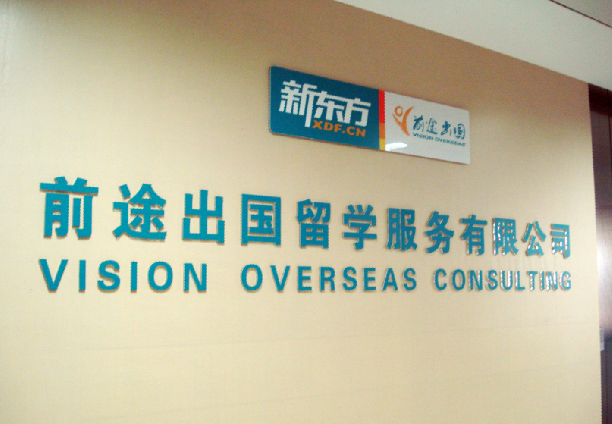 电梯门缓缓打开的瞬间,“前途出国”四个字映入眼帘。