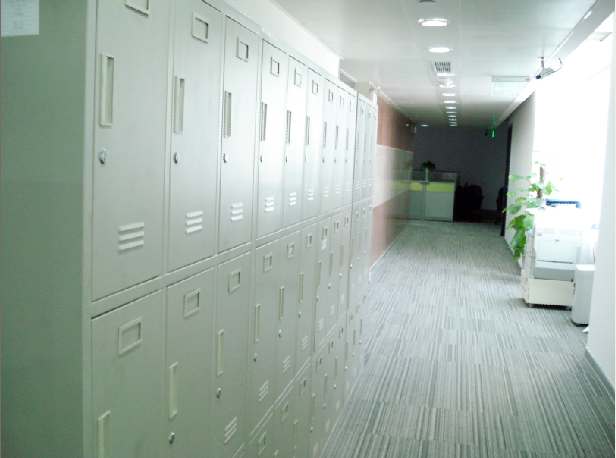 向内慢慢前行,是前途出国装修一新的室内长廊,整齐的排柜和办公设备。