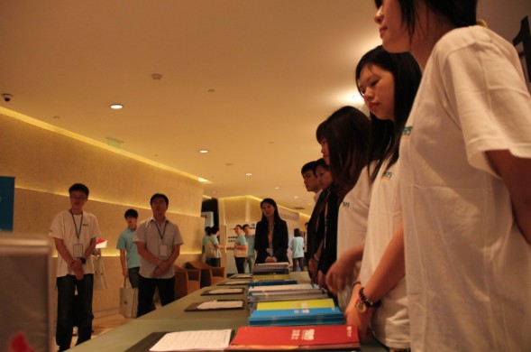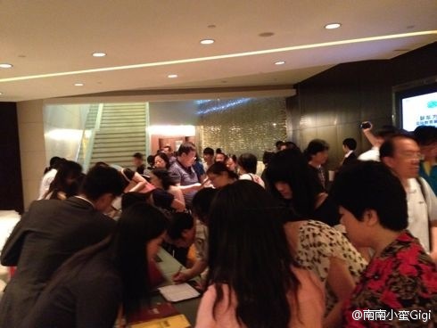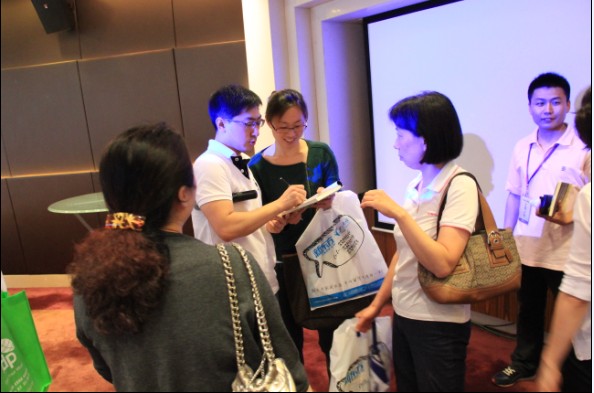 由于我们的场地在酒店的9楼,因此,几个电梯在不停的“叮”,大批人群已经涌入,前台接待区开始忙不过来,但是家长们都是非常nice,他们耐心的等待前面的客人签到后,然后再做签到,这给我们的工作有非常大的帮助。