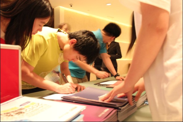 出乎意料的是在离展会开始还有一个多小时的时候,有大批家长已经到来,我们意外但是并不慌乱,做好了一批的接待。