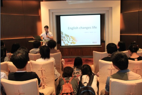 图为:邱政政老师分享《英语改变人生 留学成就未来》