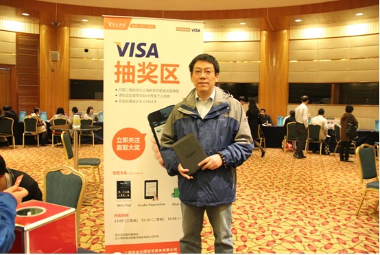 同时,新东方国银行、visa等多个金融机构合作,设置专门的游戏区和抽奖区。现场抽取ipad大奖。