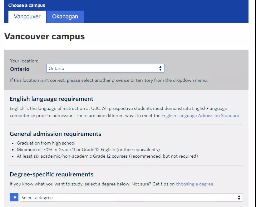 如上图UBC大学对于加高安省的学生入学要求所示,如果在加拿大完成4年及以上的学习可以免除语言成绩,如果不满足条件需要提供合格的语言成绩,如雅思6.5单项不低于6.0, 除此之外,要求拿到OSSD,70% Grade 11或者Grade 12 English 成绩,至少6门12年级课程成绩,同时针对于个别专业也有一些先修课的要求,比如尚德商学院的Commerce要求12年级课程包括 ENG4U(English), MHF4U(Advanced Functions) , 同时建议学生在Grade 11 和Grade 12的时候选修一些相关课程。