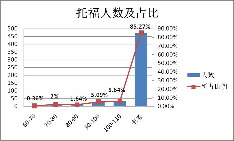 图1图2是申请加拿大研究生考取雅思托福的人数占比,因为加拿大高校对于雅思托福的认可度是一样的,所以学生可以根据自身情况选择雅思和托福。图2中有85.27%的学生未考托福,还有0.36%学生托福在70以下,并不是加拿大硕士申请不需要语言成绩,而是这部分学生选择了考雅思,同理图1中雅思5.5以下的学生最终选择提供托福成绩,是因为加拿大硕士基本上都是要求直录,即雅思需要到达6.5或托福90分,除了个别大学的个别专业可以给学生配语言,只需要提供雅思5.5分或者托福70以上的语言,但这种硕士有条件录取毕竟占少数。