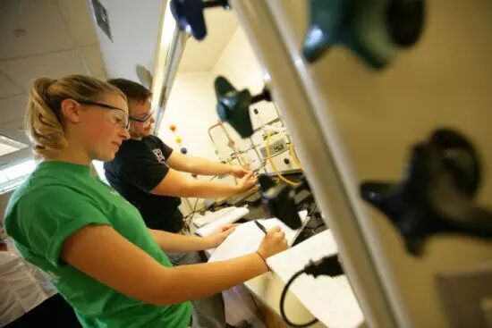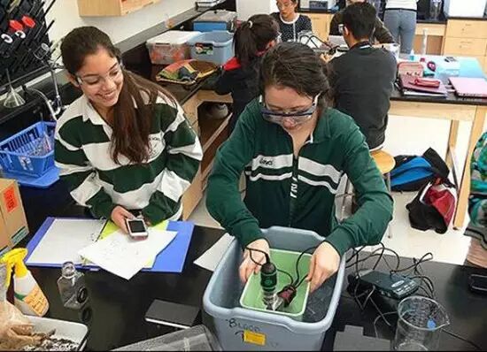 美国中学也非常重视学生的动手能力,实验课要占去一大半课时,真正的理论讲解并不多,更多的是通过实验让学生自己理解。课程氛围也是比较自由的,学生出入教室不必请求老师的许可,不必举手即可自由提问回答,也可以随时自行讨论。美国的孩子普遍很好学,在他们看来,汲取知识比别的一切都重要。