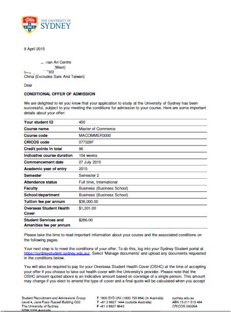 背景分析: 这位同学,西南石油大学石油工程专业往届毕业生。拥有将近5年石油行业工作经验。学生主要想申请悉尼大学的商科专业。根据学生的申请要求,我们仔细了解了申请学校的要求之后,指导学生撰写了一份商科方向的个人陈述,其中主要描述了学生工作中销售方面以及管理方面的工作经验和学生未来的职业规划。虽然学生申请的专业与本科专业不同,但是学生在大学期间有着丰富的课外活动,于是我们让学生提供了丰富的个人简历作为辅助材料。经过我们的努力,学生最终拿到了悉尼大学的录取。