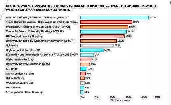 由世界顶尖学者在教学和研究的过程中提名他们认为世界最好的大学。他们也不会透露自己提名的原因,所以这个排名是代有强烈的个人主观感受。